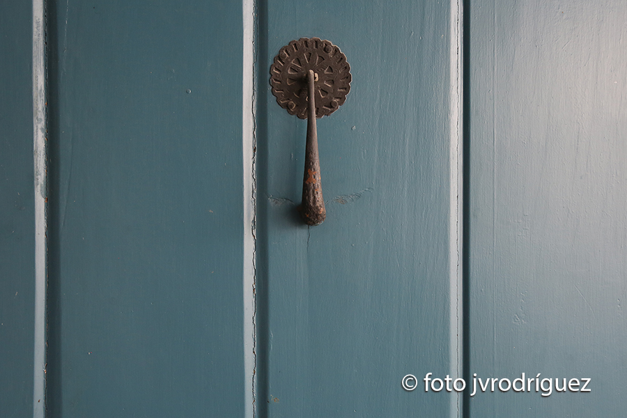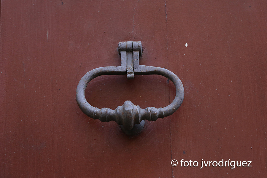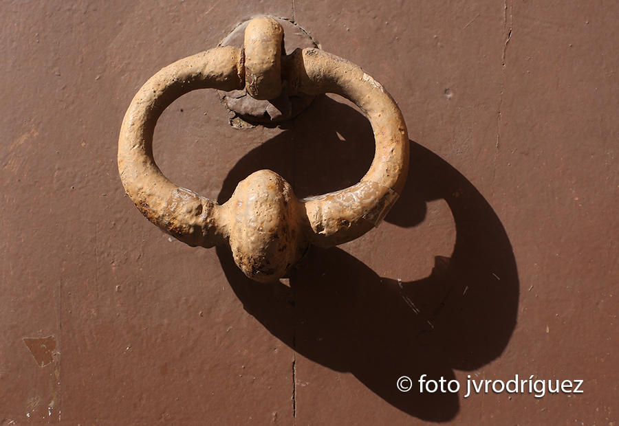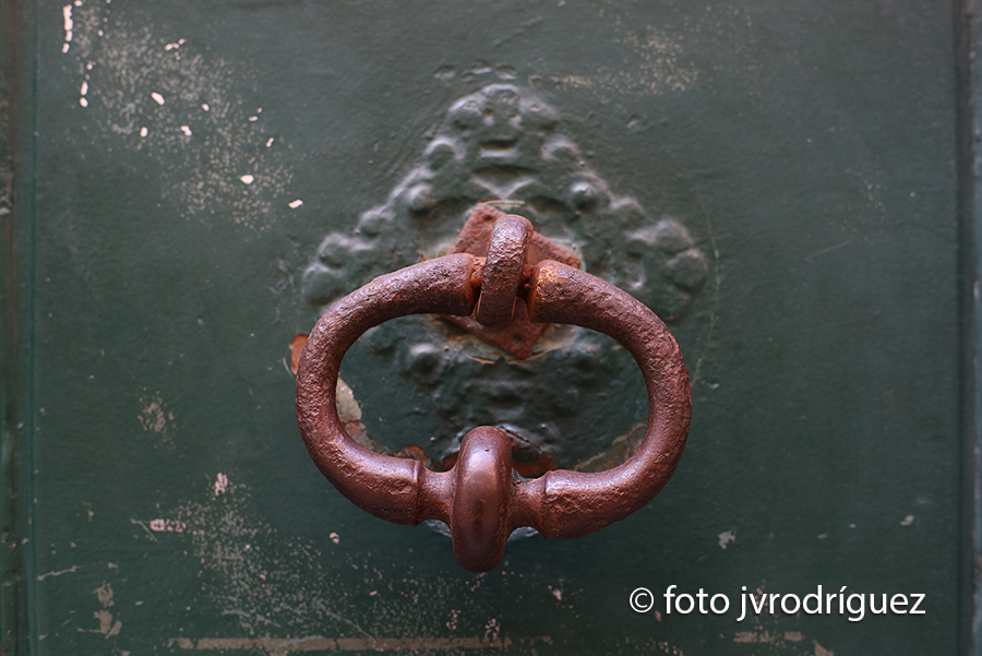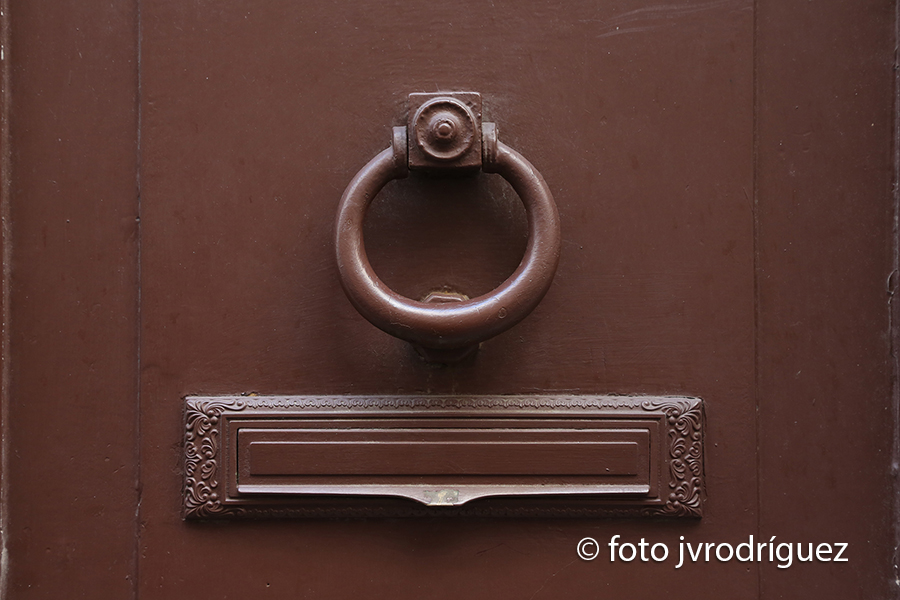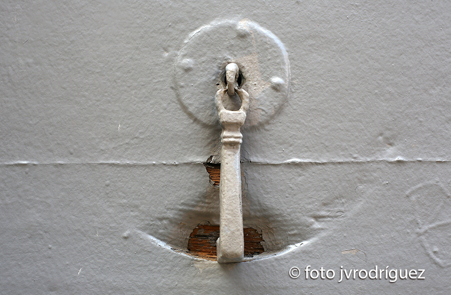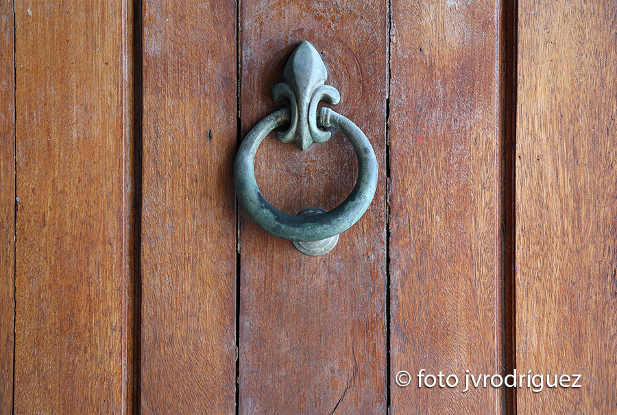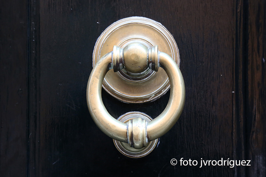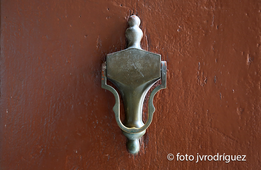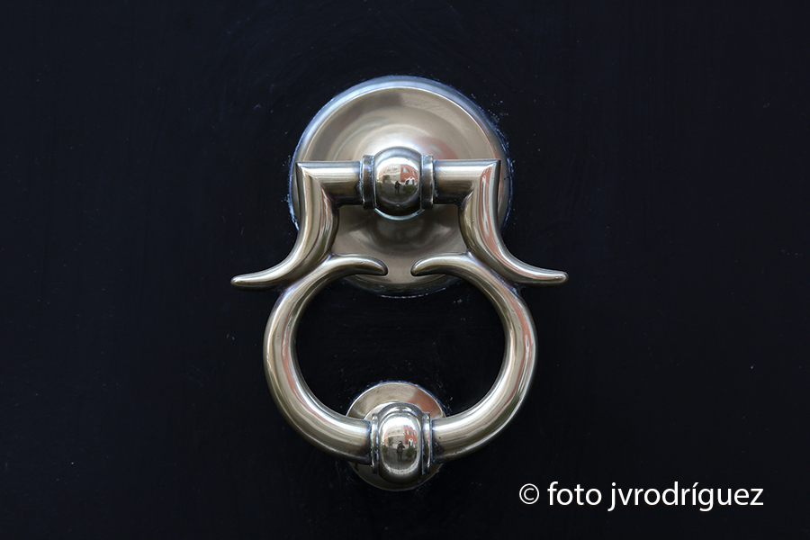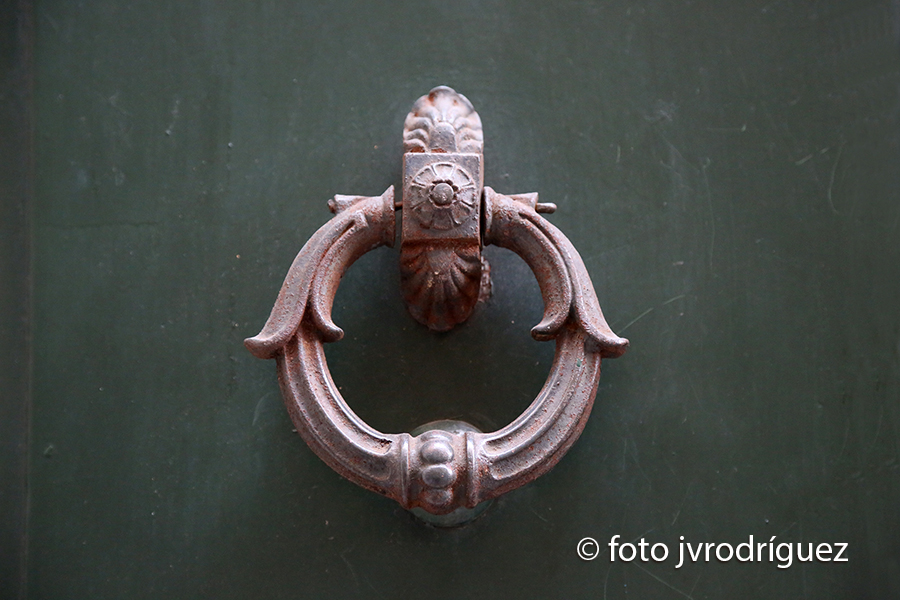 JV Rodríguez lee el alma de las ciudades en pequeños detalles como estas aldabas y llamadores que adornan, ya inútiles, las puertas de tantas viviendas. Con sus imágenes nos traslada a un mundo habitado por la simplicidad de un óvalo de hierro sobre un portón rústico y humilde, nos muestra las mansiones decoradas con leones de bronce o descubre la imaginación de ese barroco que creció desbordado al otro lado del Atlántico.