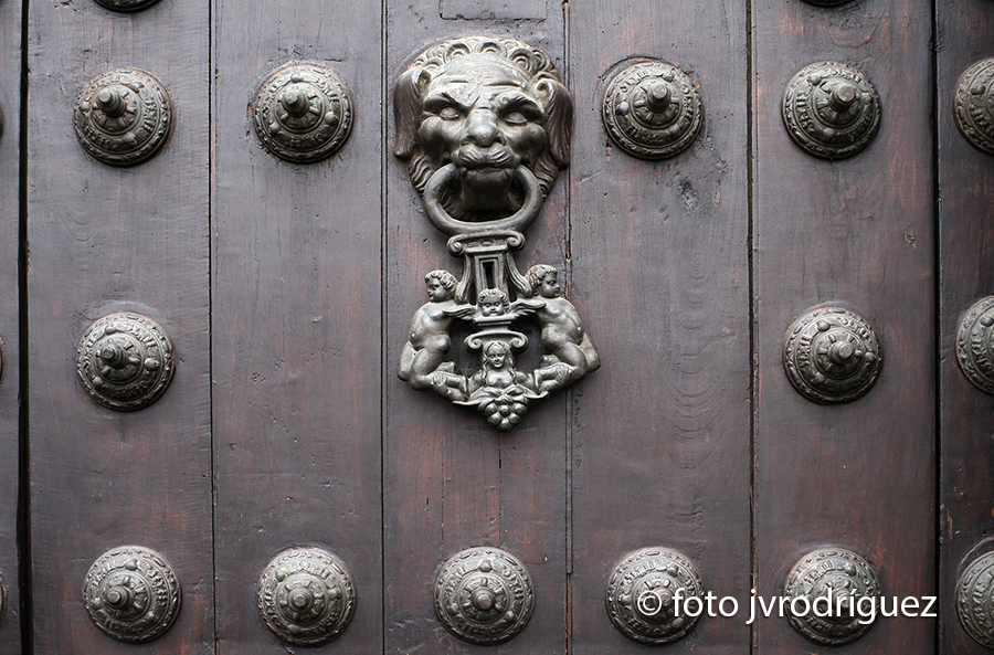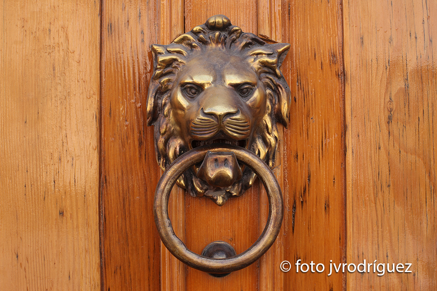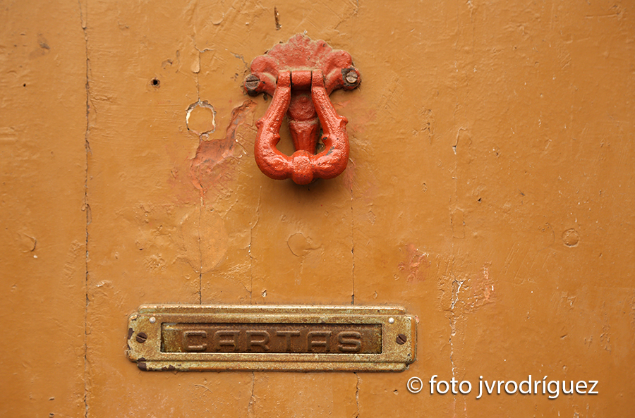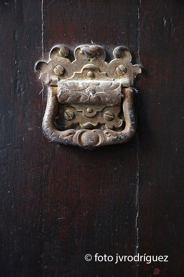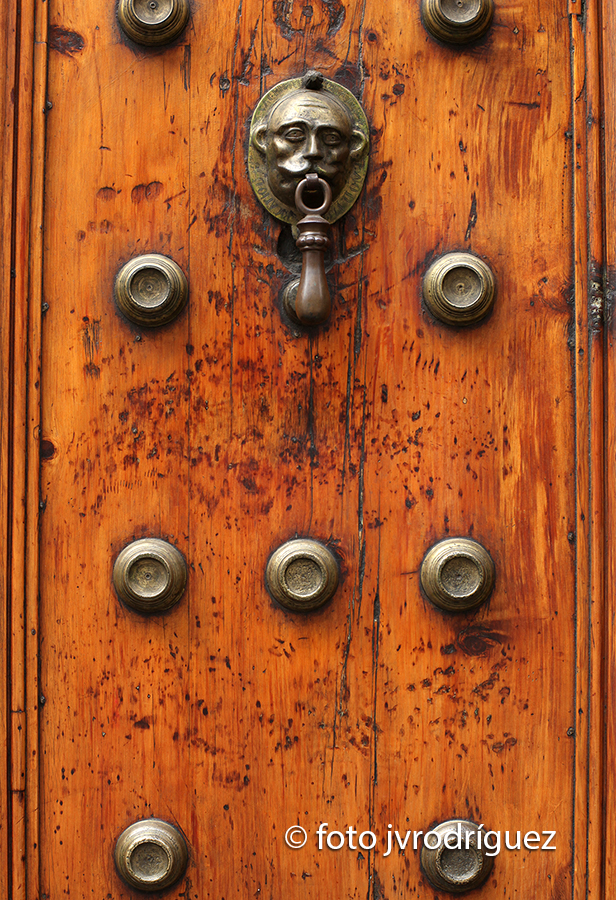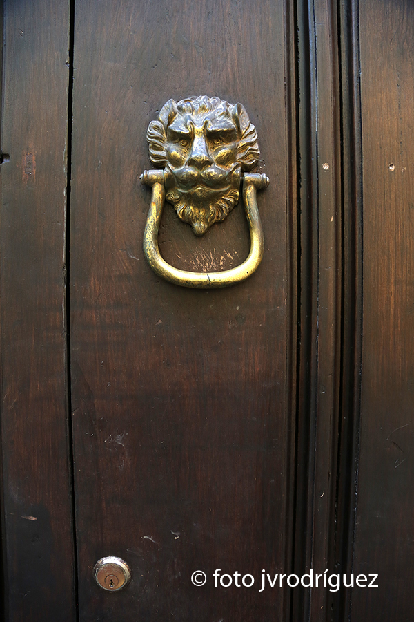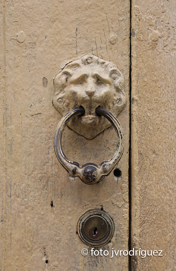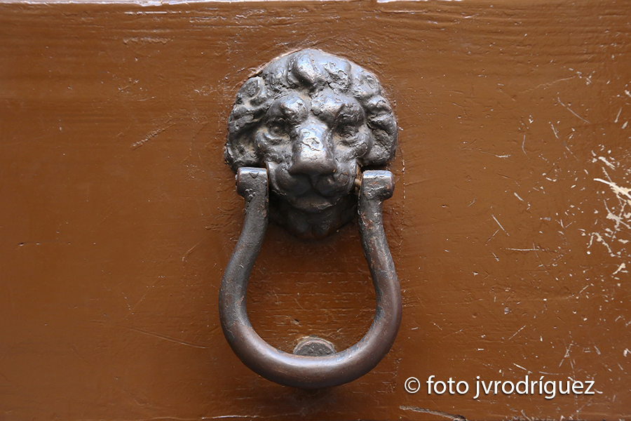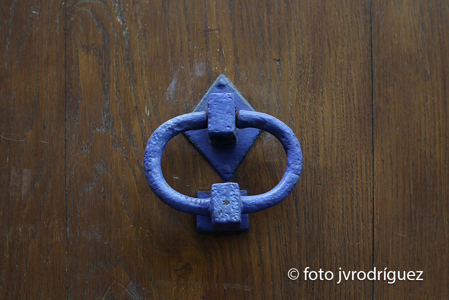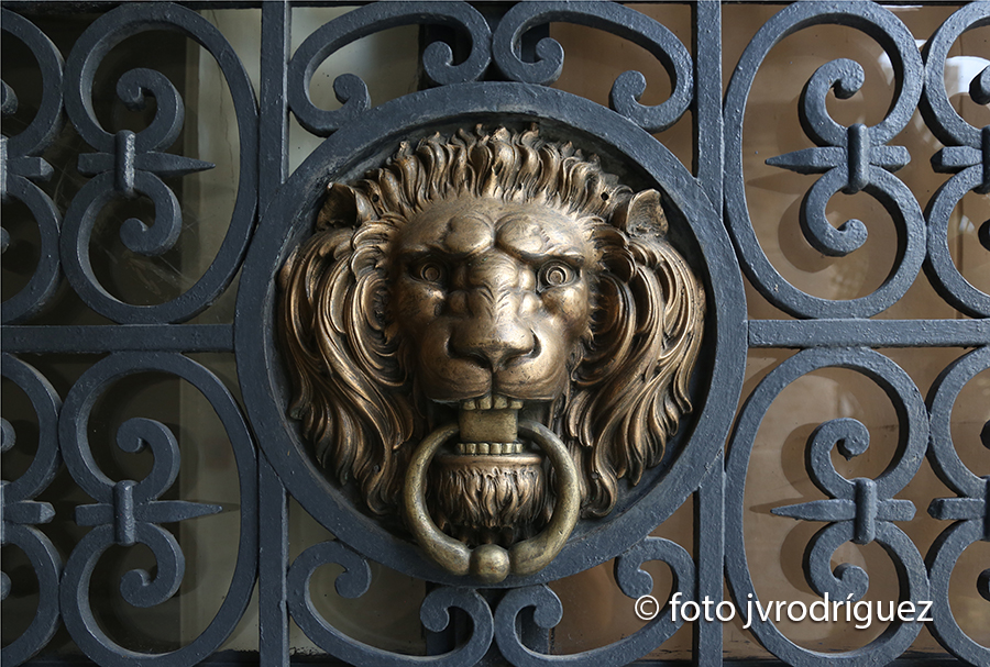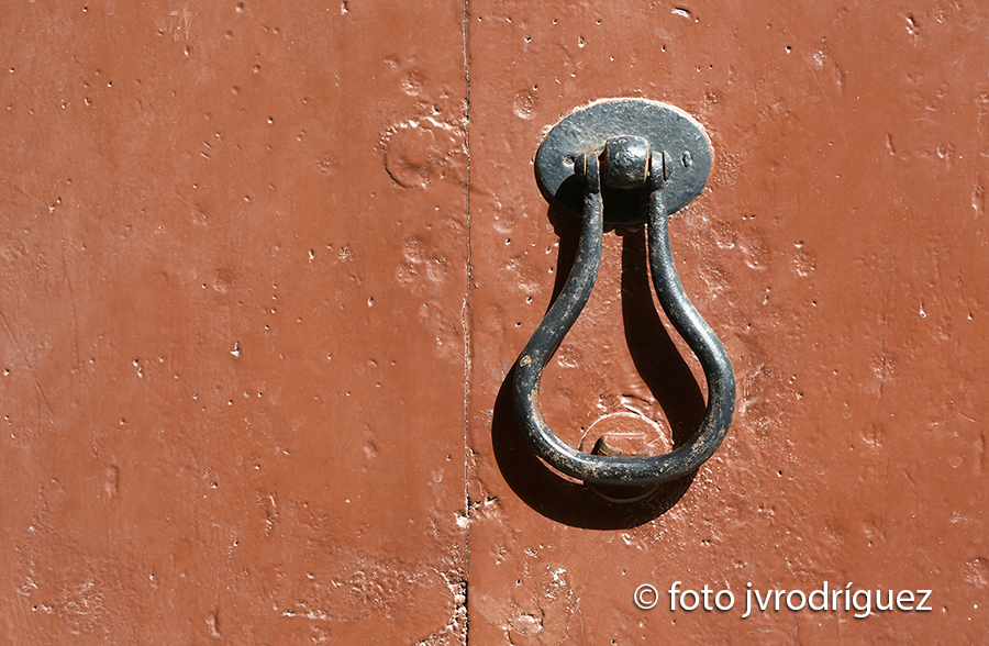 JV Rodríguez lee el alma de las ciudades en pequeños detalles como estas aldabas y llamadores que adornan, ya inútiles, las puertas de tantas viviendas. Con sus imágenes nos traslada a un mundo habitado por la simplicidad de un óvalo de hierro sobre un portón rústico y humilde, nos muestra las mansiones decoradas con leones de bronce o descubre la imaginación de ese barroco que creció desbordado al otro lado del Atlántico.