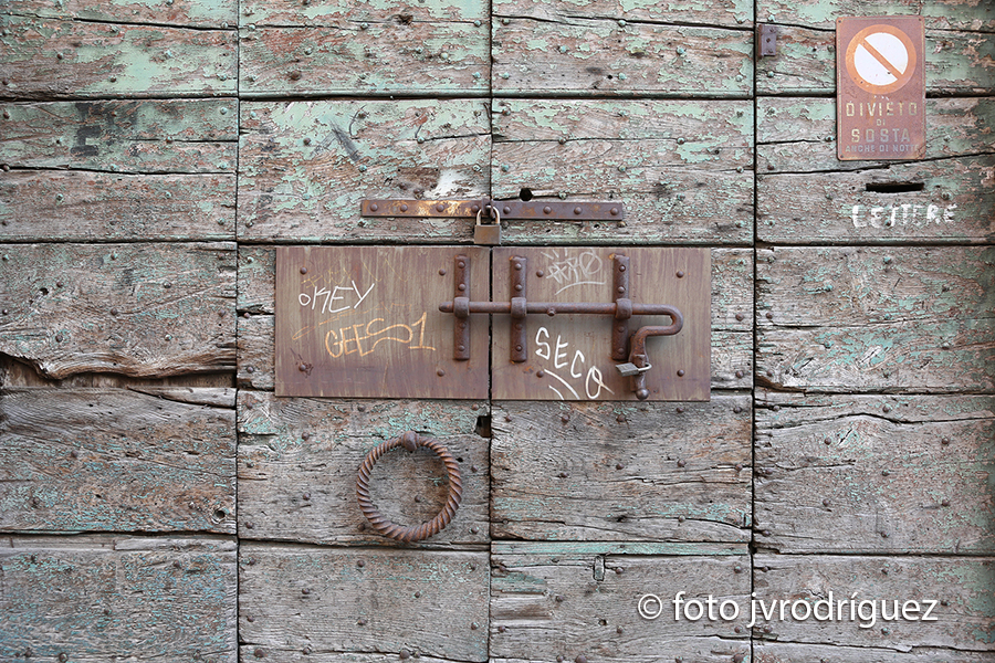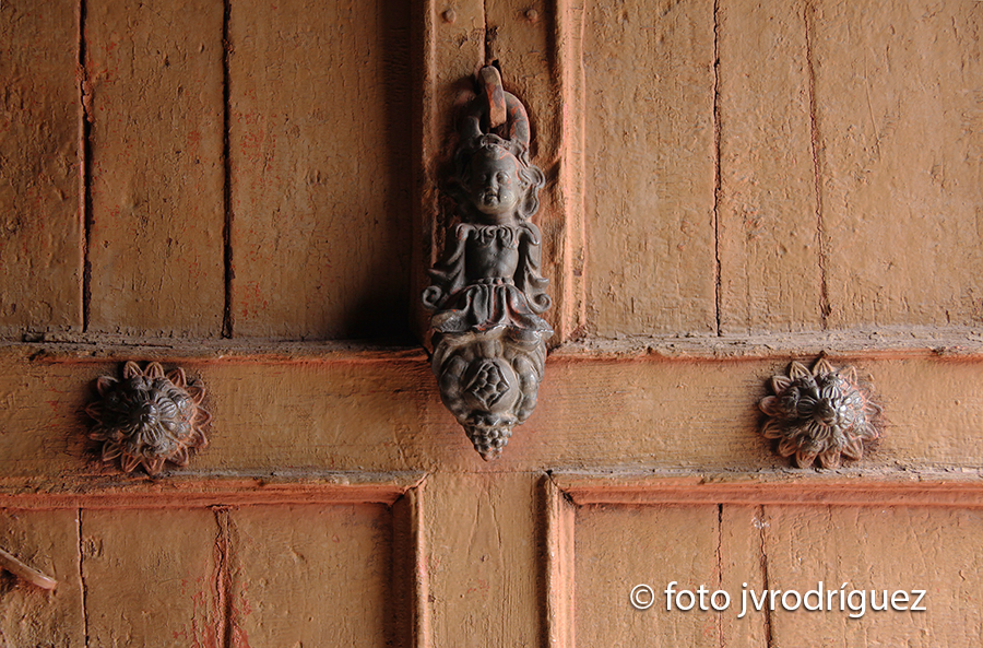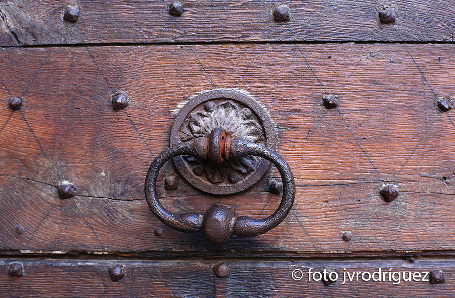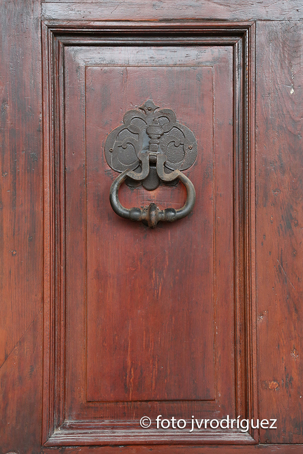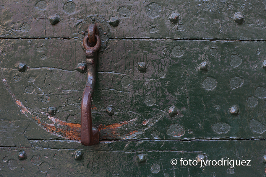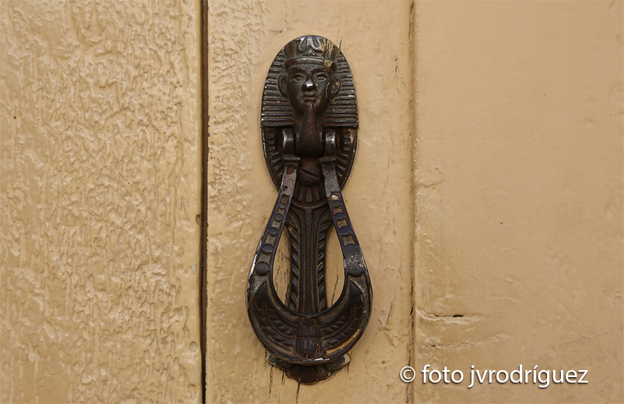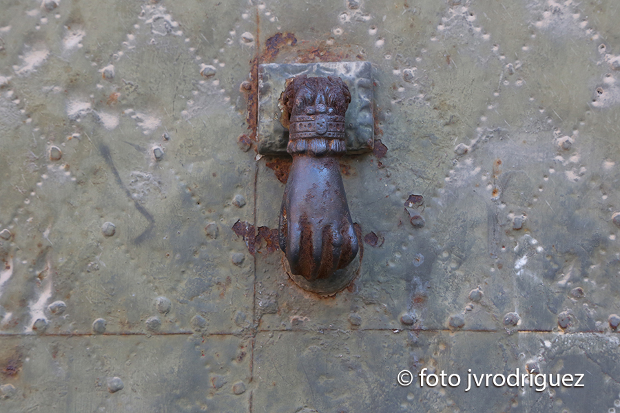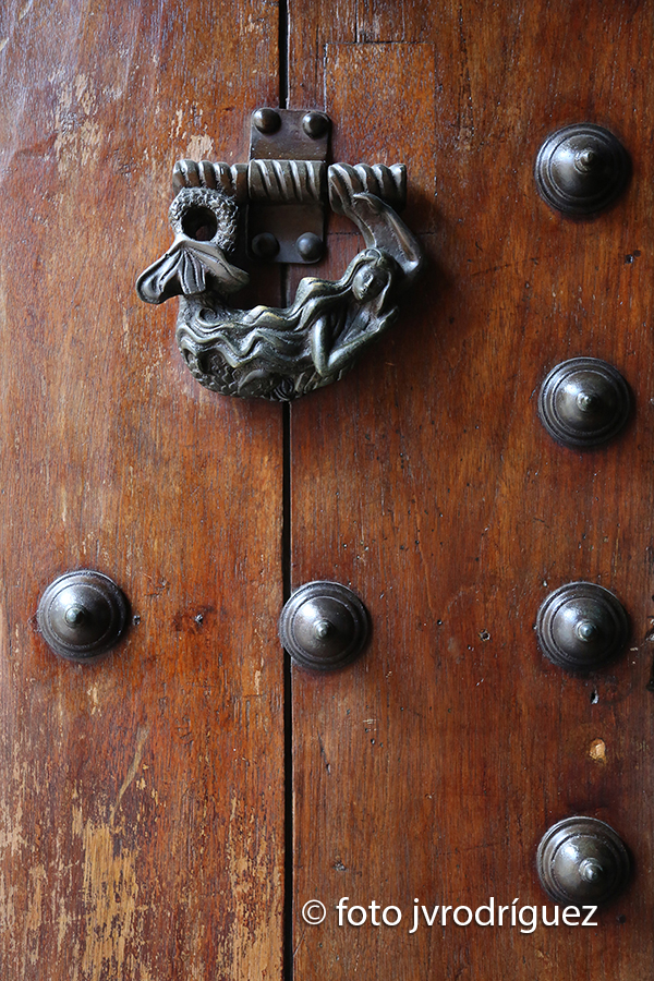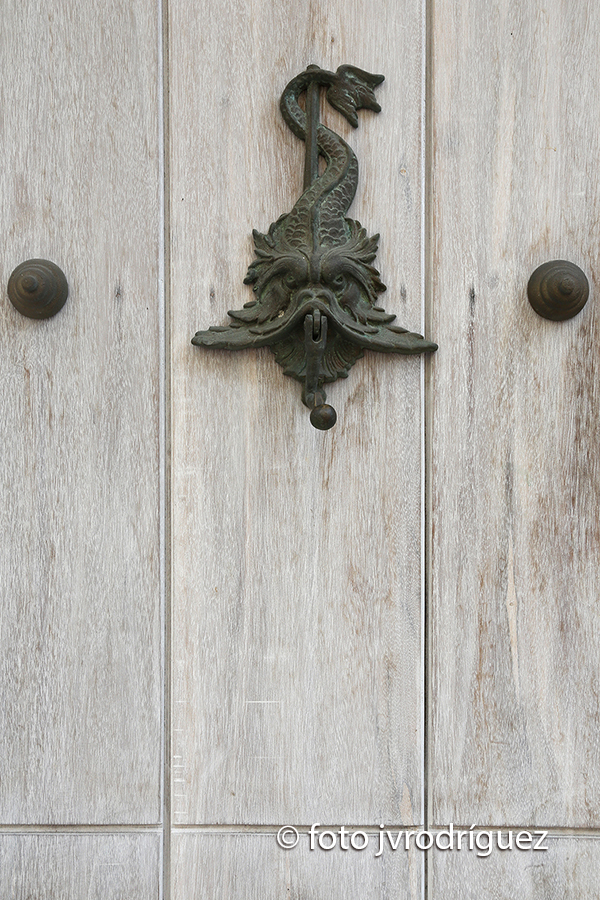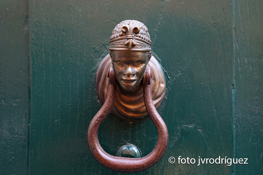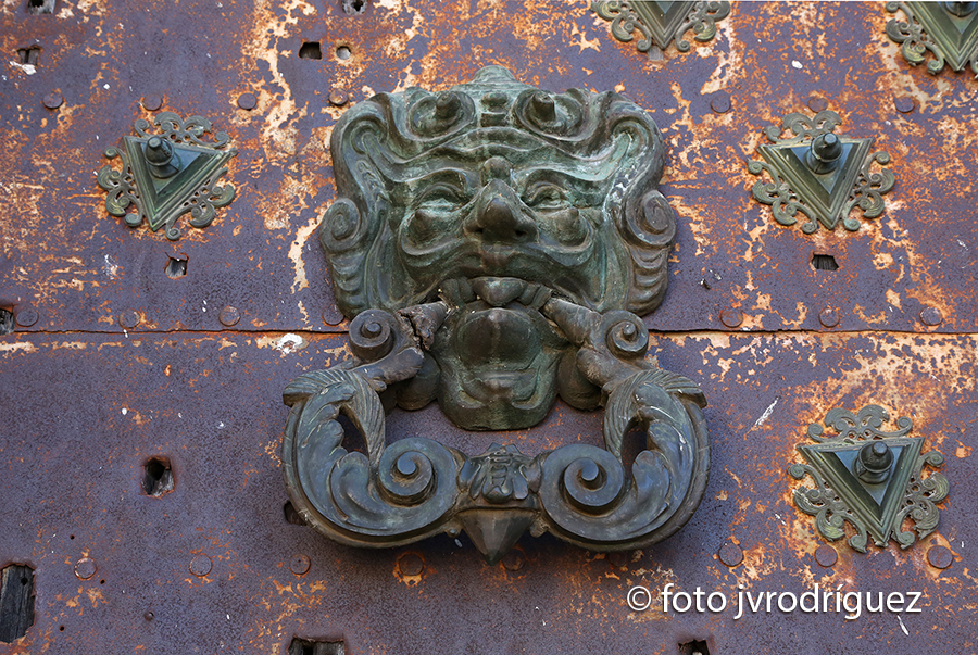 JV Rodríguez lee el alma de las ciudades en pequeños detalles como estas aldabas y llamadores que adornan, ya inútiles, las puertas de tantas viviendas. Con sus imágenes nos traslada a un mundo habitado por la simplicidad de un óvalo de hierro sobre un portón rústico y humilde, nos muestra las mansiones decoradas con leones de bronce o descubre la imaginación de ese barroco que creció desbordado al otro lado del Atlántico.